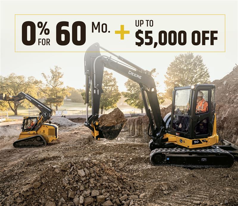 - 0% APR for 48 Months + up to $5,000 off on New Compact Construction Equipment