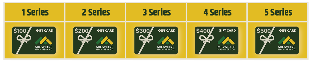 Use your gift card toward attachments, parts, service, or gear at Midwest Machinery.