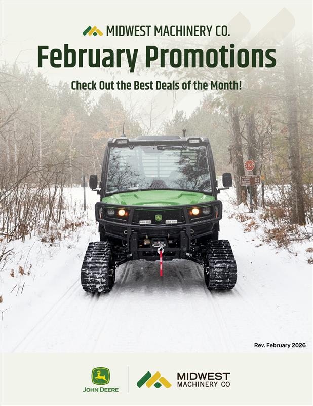 Learn MoreOffers and discounts valid to customers with an address inside Midwest Machinery's Area of Responsibility (AOR). Total savings for tractor packages based on MSRP pricing. Savings and financing offers valid on in-stock units only and good through February 3, 2026. Financing options available with approved credit through John Deere Financial. Sale prices calculated with 0% down payment. Some restrictions apply; see your local Midwest Machinery for details. Prices and monthly payment include installation and setup, but do not include sales tax. Financing offers may require a financing fee.